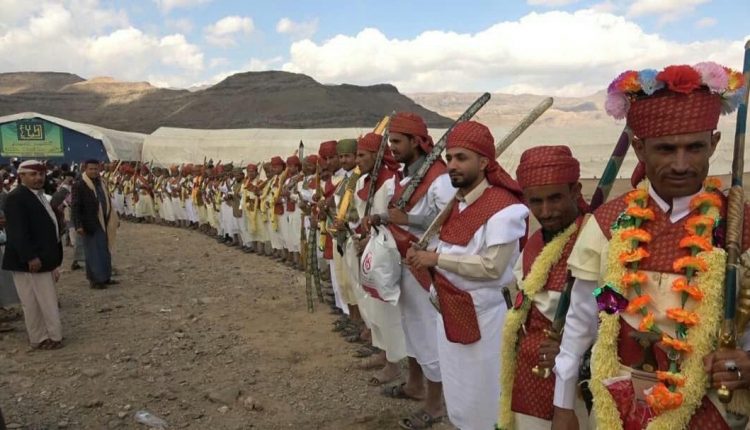 أقيمت في مديرية النادرة بمحافظة إب مراسم عرس جماعي ل (114) عريسا وعروساً من أبناء الشهداء وذويهم في منطقة الدوير .