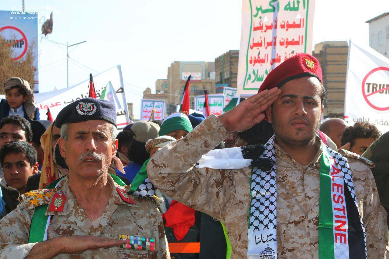 بيان مسيرة صنعاء: الشعب الفلسطيني يتعرض لأشد أنواع الظلم نتيجة احتلال العدو الإسرائيلي لأرضه وما يقوم به من جرائم، بدعم كامل من أمريكا