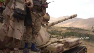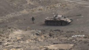 ووثقت المشاهد هروب عشرات الآليات والمئات من المجندين من المعسكرات والمواقع واغتنام عدد كبير من الدبابات والآليات واحتراق وتدمير عدد آخر في المواقع التي كان يتمركز فيها منافقو العدوان السعودي الأمريكي بذات المحور.