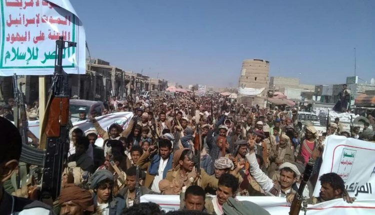 مسيرة حاشدة لقبائل الجوف تتوعد بالثأر على جريمة المصلوب (صورة)