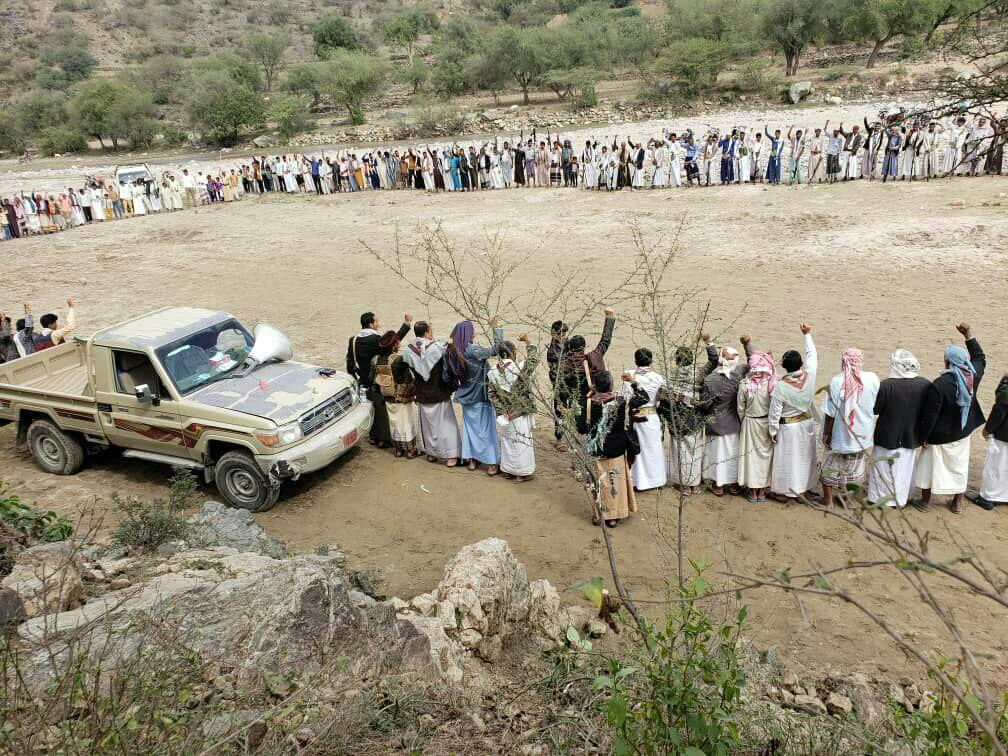 وقفة إحتجاجية في الشغادرة بحجة رفضاً لصفقة ترامب ومباركة لعمليات الجيش واللجان الشعبية (صور)