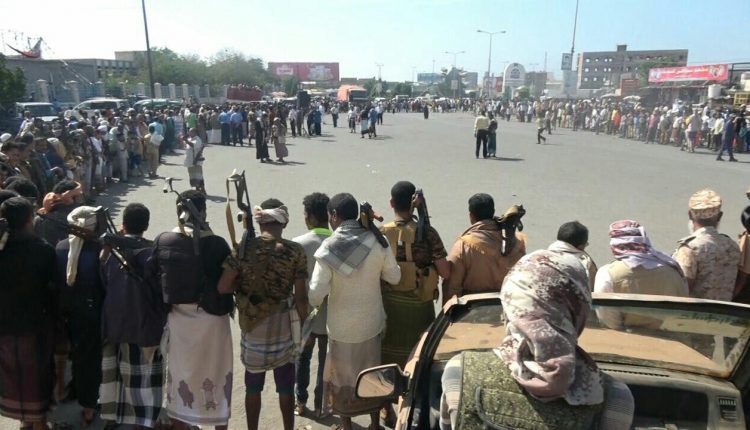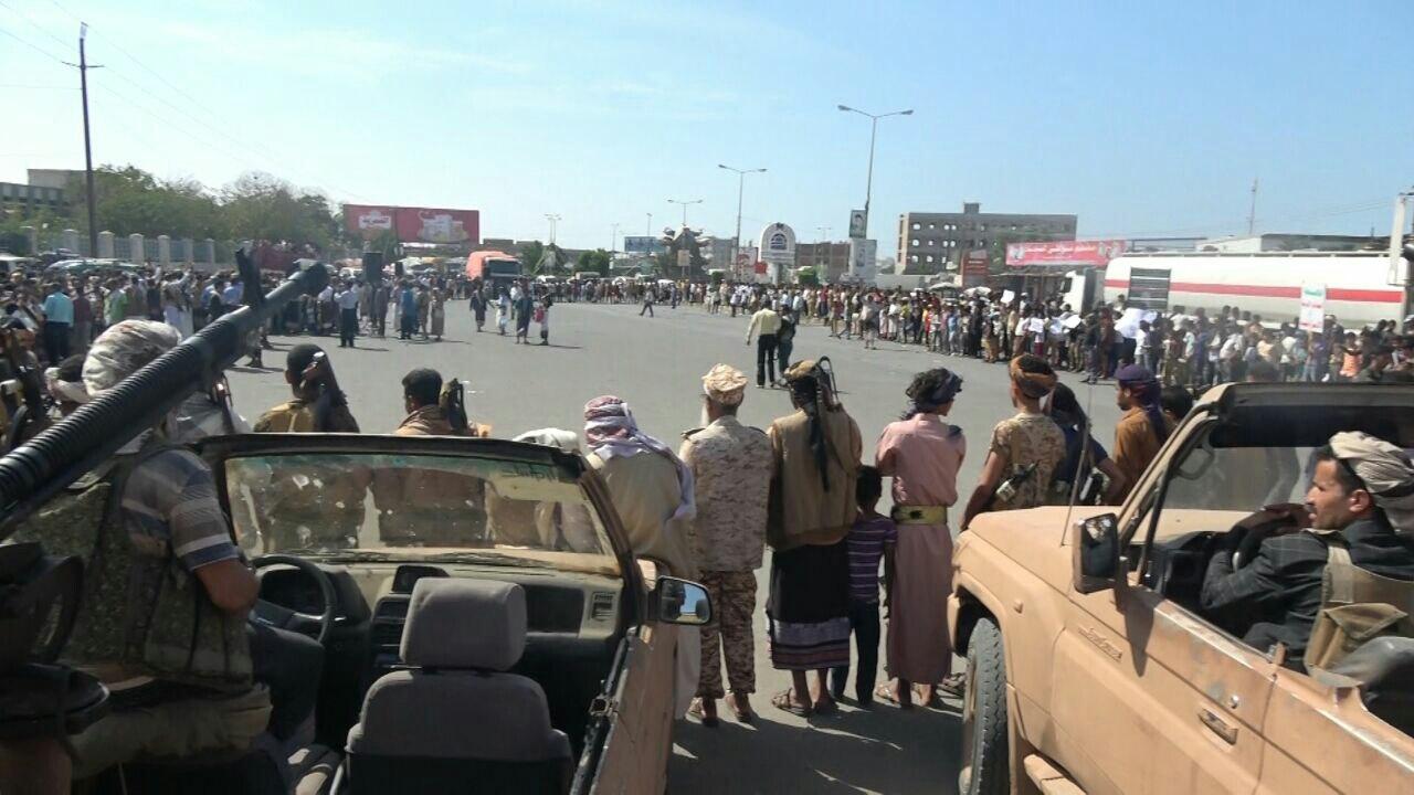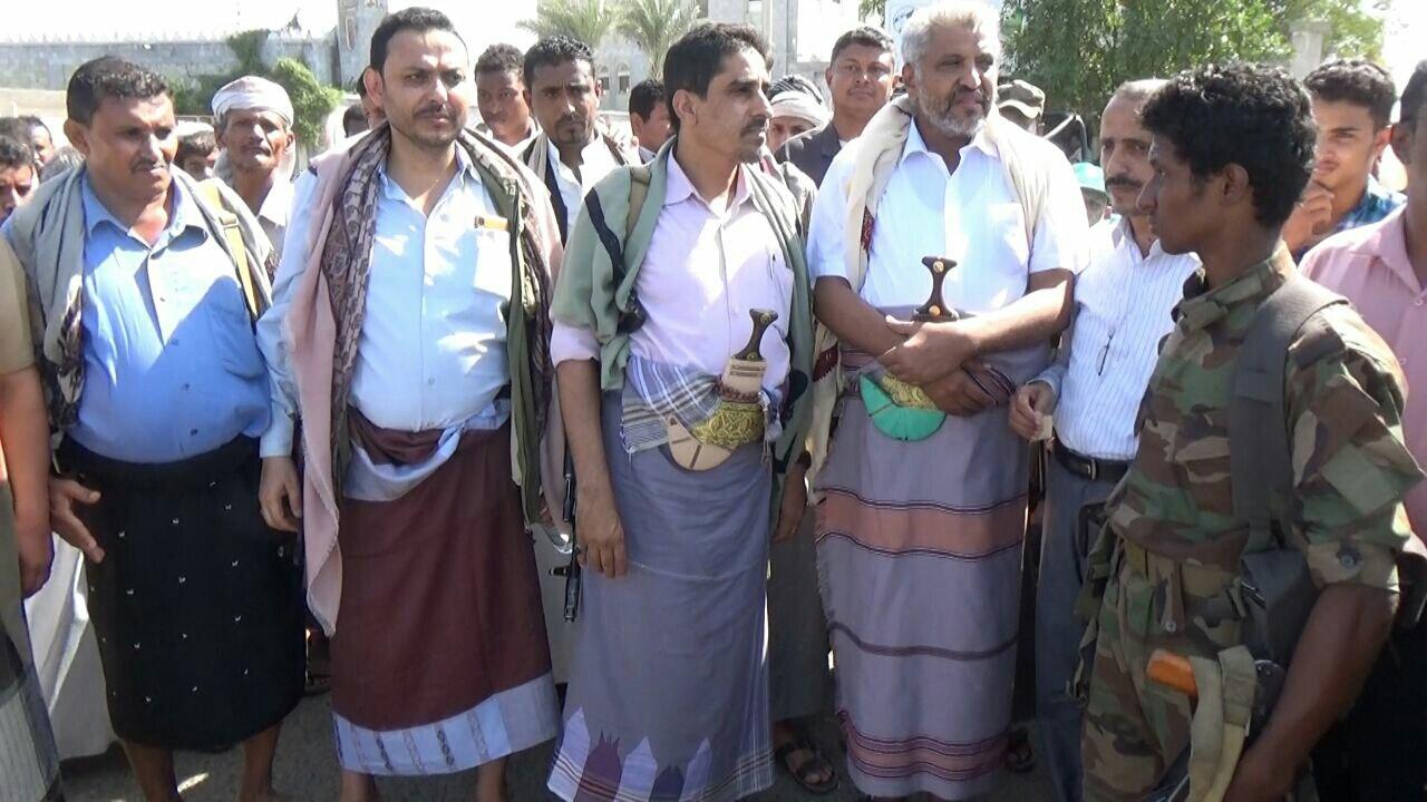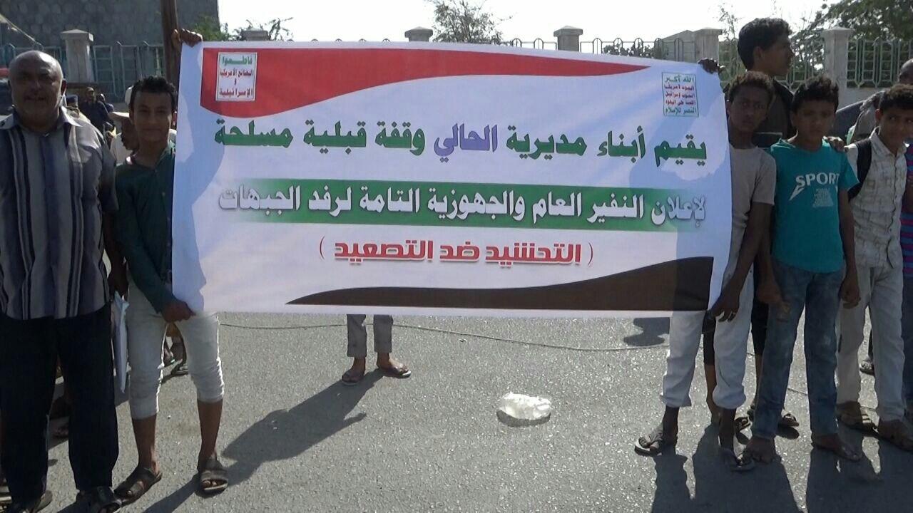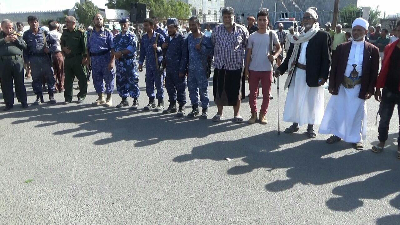 وفي الوقفة أشار مدير مكتب الضرائب بالمحافظة خالد يحيى الويس إلى ما يتعرض له أبناء المحافظة من جرائم وحصار منذ خمس سنوات من قبل دول تحالف العدوان.