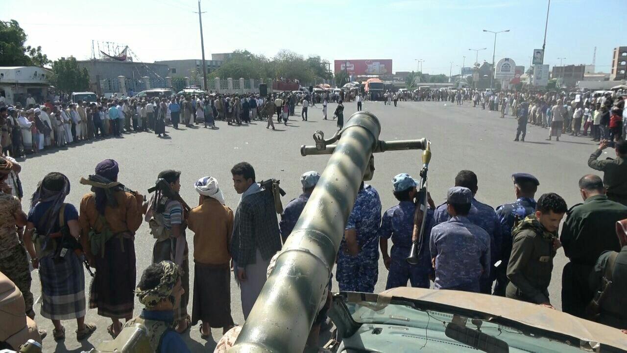 نظم موظفو مكتب الضرائب بمحافظة الحديدة اليوم وقفة إحتجاجية رفضا لصفقة ترامب، ومباركة لعمليتي “توازن الردع الثالثة” و”البنيان المرصوص” والعملية الأمنية” فأحبط أعمالهم” وتدشينا للمرحلة الثالثة من تأصيل الهوية الإيمانية .