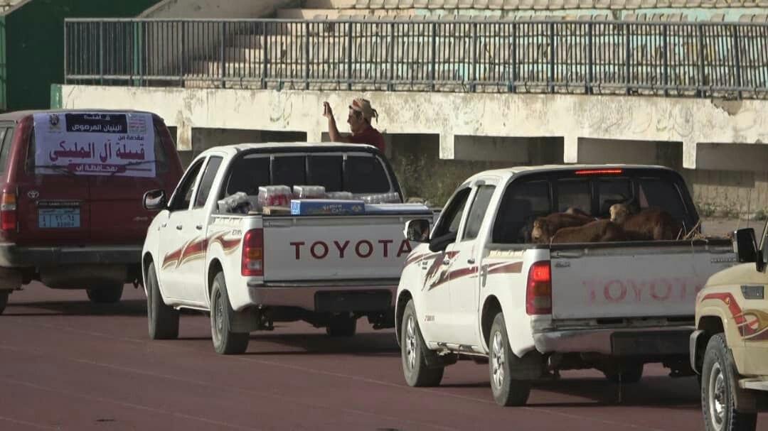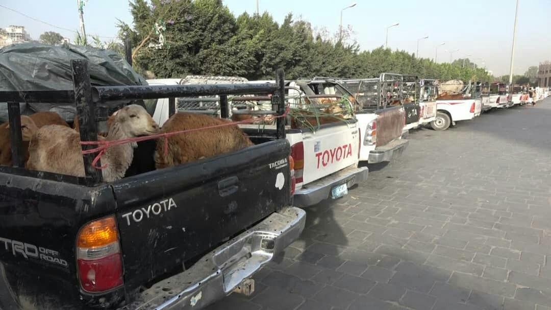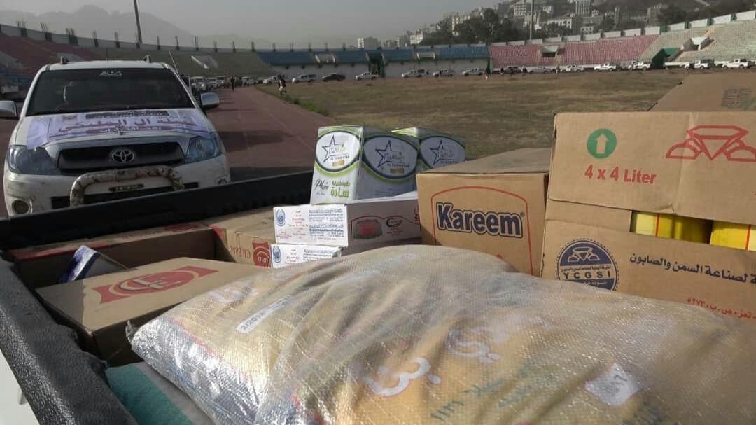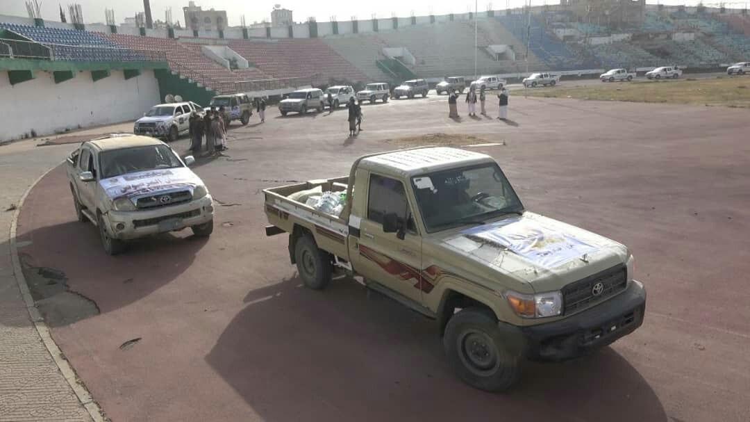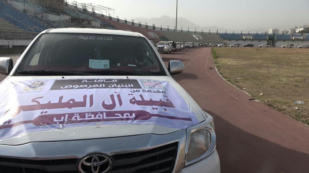 سيرت قبيلة آل المليكي بمحافظة إب، اليوم الأحد، قافلة عينية وغذائية تقدر قيمتها ب (٣٠) مليون ريال، احتوت على مواد غذائية وعدد كبير من رؤوس الأبقار والمواشي .