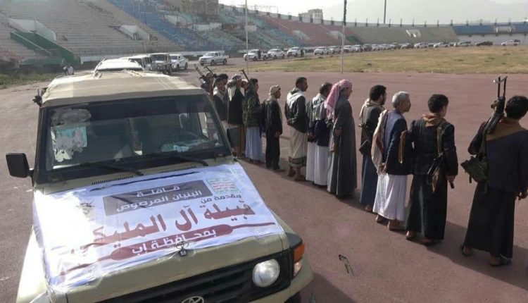 شاهد.. قبيلة آل المليكي في إب ترفد الجبهات بالمقاتلين وقافلة غذائية بعشرات الملايين (صور)