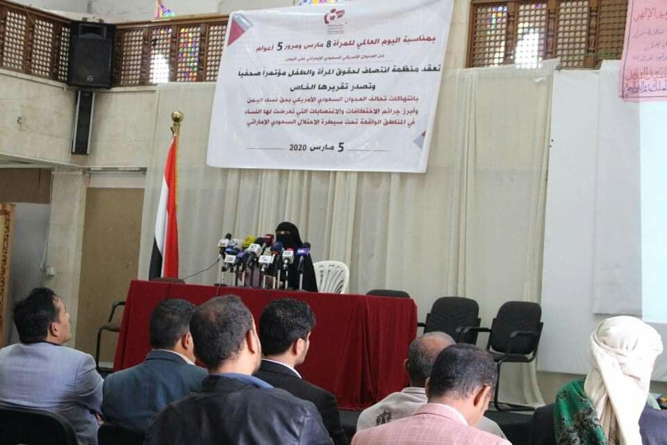 عقد اليوم بصنعاء مؤتمر صحفي حول انتهاكات تحالف العدوان بحق نساء اليمن نظمته منظمة انتصاف لحقوق المرأة والطفل بمناسبة اليوم العالمي للمرأة.