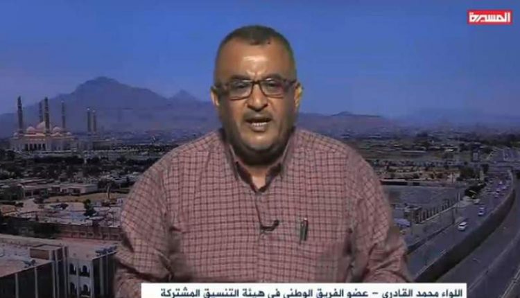 دعا عضو لجنة التنسيق المشتركة اللواء محمد القادري الأمم المتحدة لتحمل مسؤوليتها تجاه الشعب اليمني والضغط على قوى العدوان لوقف العدوان ورفع الحصار والخروقات المستمرة لاتفاق السويد.