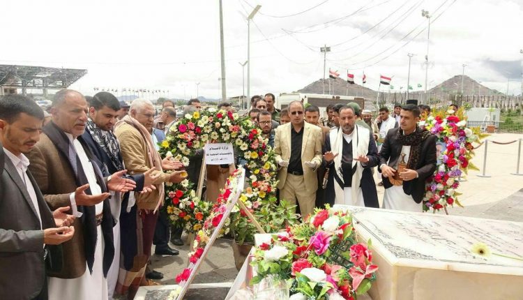 وضع وزير الإعلام ضيف الله الشامي ومعه قيادات المؤسسات الإعلامية اليوم، إكليلاً من الزهور على ضريح الرئيس الشهيد صالح الصماد ورفاقه بميدان السبعين بالعاصمة صنعاء, في الذكرى الثانية لاستشهاده.