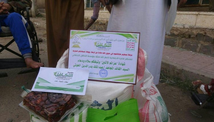 من جانبه اشار عبد الصبور المدير التنفيذي ان مؤسسة التكافل فرع عمران قدمت 98 سلة غذائية للجرحى المعاقين الذين سطروا اروع ملاحم البطولات في ميادين العزة والكرامة وهذا اقل واجب نقدمه لهم.
