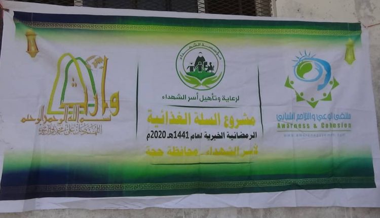 توزيع سلال غذائية على أسر الشهداء بالجميمة في حجة