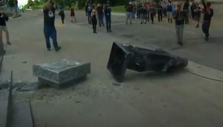 ووفقا لـ “رويترز” أسقط المحتجين يقودهم أحد نشطاء الأمريكيين الأصليين في ولاية مينيسوتا التمثال المصنوع من البرونز الذي يبلغ طوله عشرة أقدام من على قاعدته المصنوعة من الجرانيت أمام مبنى برلمان الولاية في حدثه سجله مصورو الصحافة والتلفزيون.
