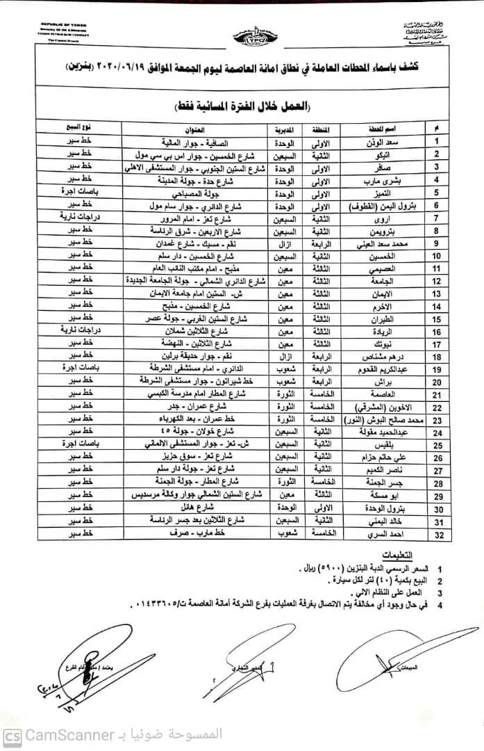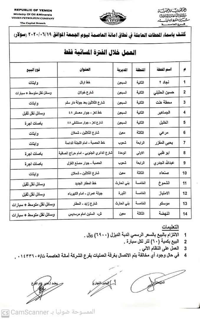 نشرت شركة النفط اليمنية كشوفات بأسماء محطات تعبئة المشتقات النفطية العاملة بأمانة العاصمة صنعاء (بنزين + ديزل) ليوم الجمعة الموافق 19 يونيو 2020م.