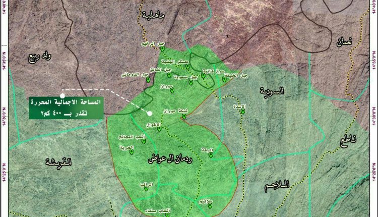شاهد خريطة توضح المساحة الإجمالية لسيطرة قوات الجيش واللجان في البيضاء ومأرب