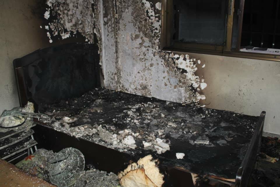 لكن مع الأسف بعد إخماد الحريق عثر على جثة امرأة متفحمة ومكبلة اليدين، وقد تعرضت لعدة طعنات بواسطة أداة حادة على كافة أنحاء جسدها، كما شوهد زوجها المدعو ياسر تولد وأولادهما الثلاثة وهم الطفل بشار 11 عاما وهيفاء 9 سنوات وعبد الرحمن 4 سنوات مكبلين الأيدي وقد اصيبا بطعنات متفرقة في أنحاء الجسم.