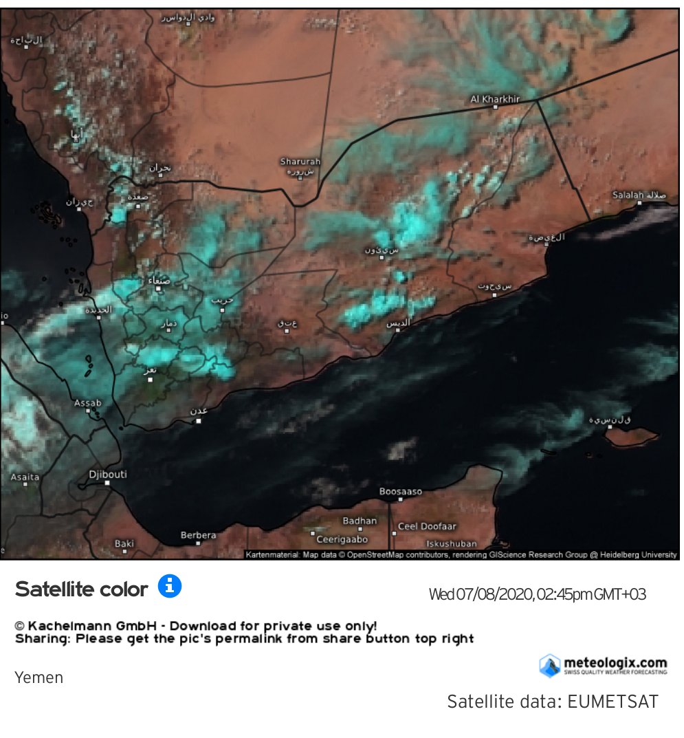 وأشارت المصادر إلى أنه من تاريخ ١٤ و ١٥ يوليو وحتى ٢٤ يوليو ستدخل اليمن بموجة أمطار جديدة.