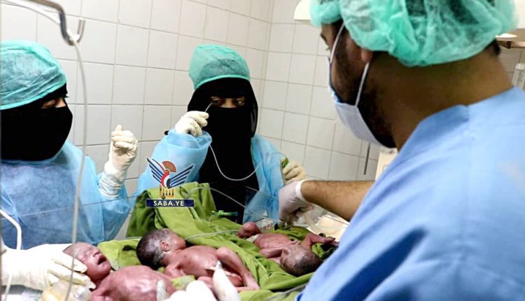 شهد مستشفى السبعين للأمومة والطفولة في العاصمة صنعاء ولادة ثلاثة توائم لامرأة في العقد الثالث من عمرها بعملية قيصرية.