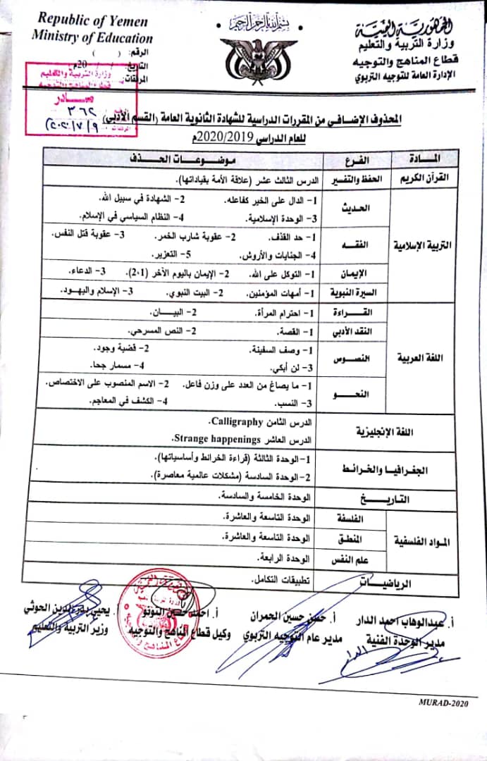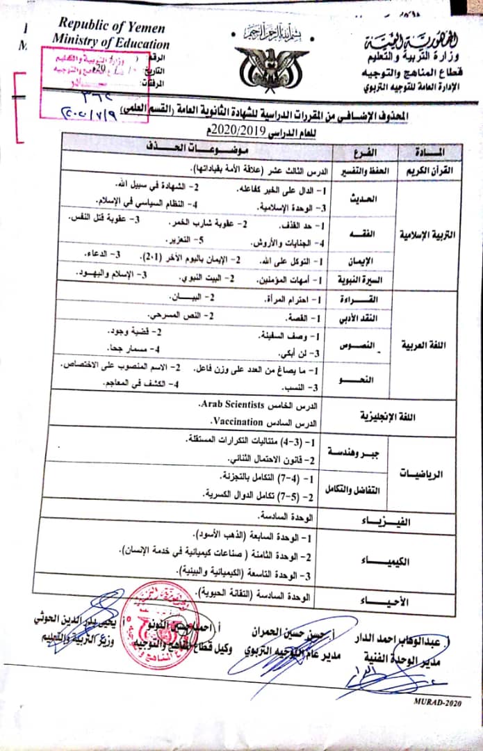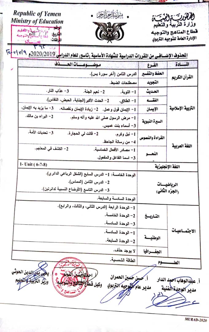 قرار وإعلان هام وسار ورد الآن من وزارة التربية في صنعاء لطلاب الشهادة الأساسية والثانوية