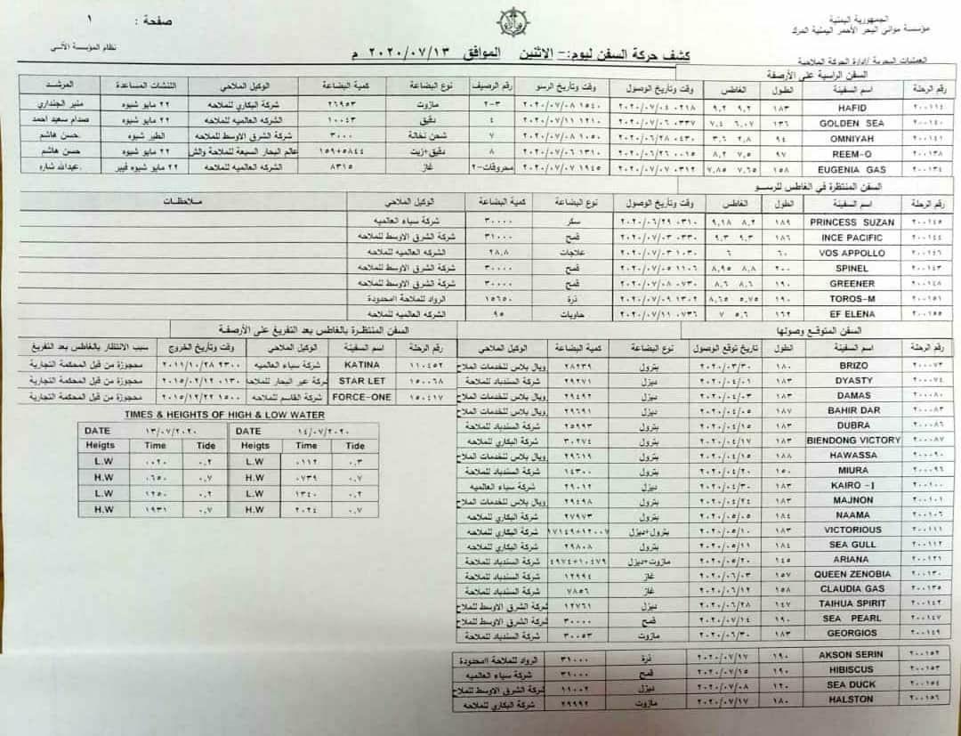 مرفق كشف تفصيلي بالكميات والسفن المحتجزة: