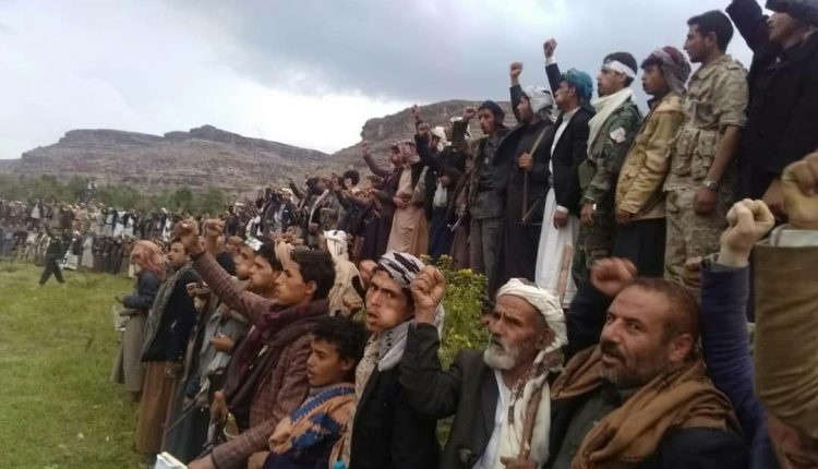 وقفة غاضبة لقبائل المحويت تندد بجريمة مرتزقة الإصلاح بحق آل سبيعيان