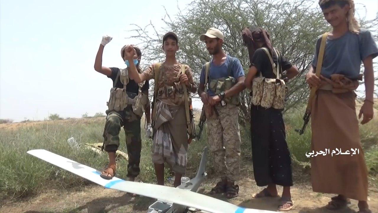 الإعلام الحربي يوزع مشاهد لطائرة RQ-20 التي تم إسقاطها في مدينة حرض قبالة جيزان (صور وفيديو)