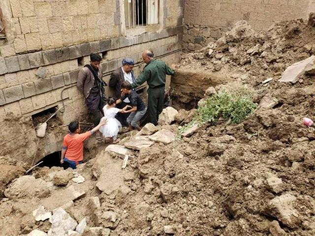 وتداول ناشطون عبر مواقع التواصل الاجتماعي صور ومقاطع فيديو لإنهيارات جزئية تعرضت لها عدد من المباني وكذلك للجدران الحاملة والأسقف بسور مدينة صنعاء القديمة.