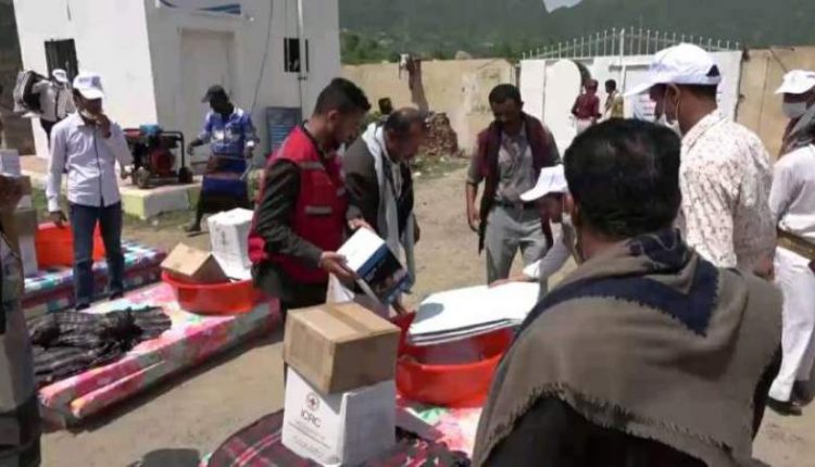 دشنت بمحافظة ريمة، اليوم الخميس، توزيع مساعدات إيوائية للمتضررين جراء سيول الأمطار بمديرية الجبين مقدمة من جمعية الهلال الأحمر بالتنسيق مع فرع المجلس الأعلى لإدارة وتنسيق الشؤون الإنسانية بالمحافظة.