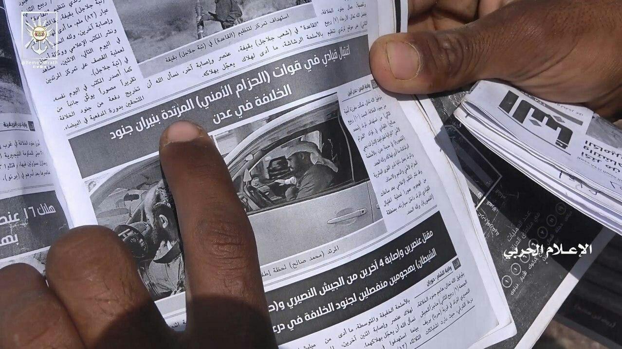 كما أظهرت المشاهد بعض المطبوعات لما يسمى بتنظيم داعش في قيفة، مكتوب في أحدها أن تنظيم داعش بمحافظة عدن هو من قام بإغتيال العقيد محمد صالح الردفاني، نائب مدير القوة البشرية لقوات ما يسمى الحزام الأمني والدعم والإسناد أمام منزله بحي المنصورة في شهر ديسمبر عام 2019م، بالإضافة إلى العديد من الكشوفات والسجلات والتسجيلات المرئية بالجرائم التي ارتكبتها التنظيمات التكفيرية في عدد من المناطق اليمنية.