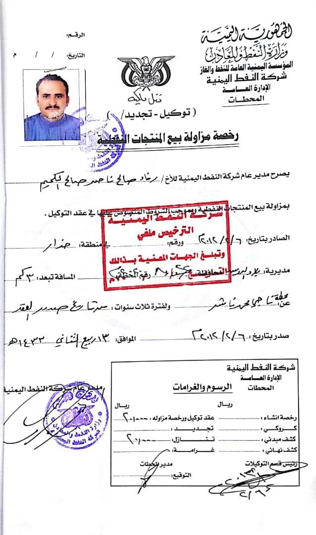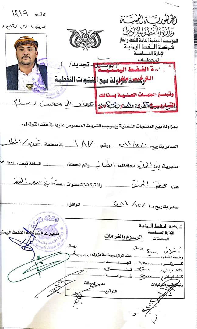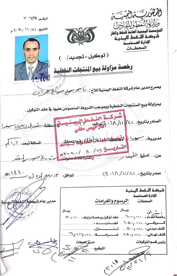 أعلنت شركة النفط اليمنية، مساء السبت، عن إلغاء التراخيص الممنوحة لثلاث محطات مخالفة بأمانة العاصمة ومحافظة صنعاء، نظراً لقيامها ببيع المشتقات النفطية بأسعار أعلى من السعر الرسمي المعلن عنه.