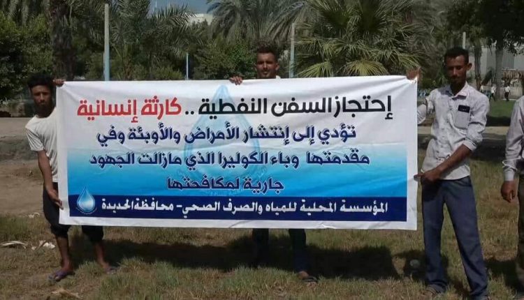 وقفة احتجاجية في الحديدة تندد باستمرار احتجاز العدوان للسفن النفطية