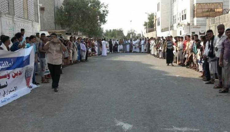وقفة لشركة النفط واتحاد وكلاء المحطات واللجان النقابية بالحديدة تنديداً بإحتجاز سفن النفط