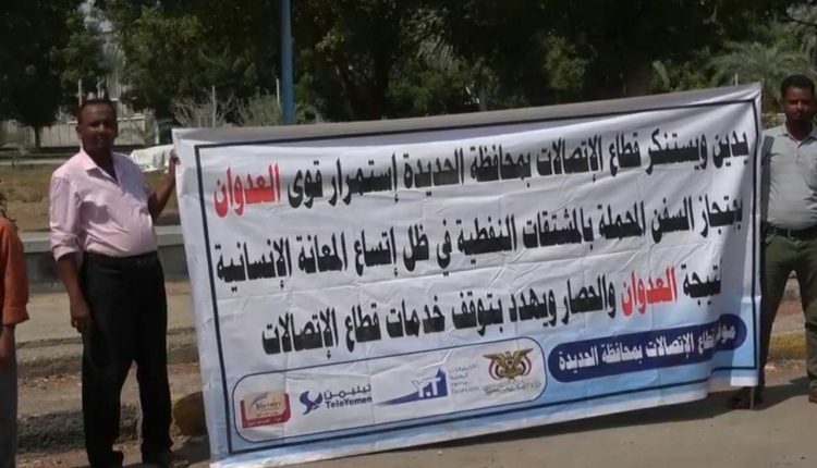نظم عمال وموظفو المؤسسة العامة للاتصالات وبريد منطقة الحديدة اليوم وقفة احتجاجية أمام مكتب الأمم المتحدة في المحافظة للتنديد باستمرار العدوان في احتجاز سفن المشتقات النفطية.