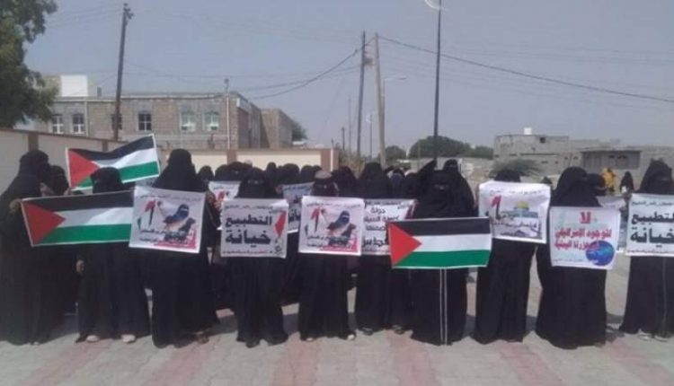 تظاهرة نسائية في أبين رفضا للتطبيع مع الكيان الصهيوني