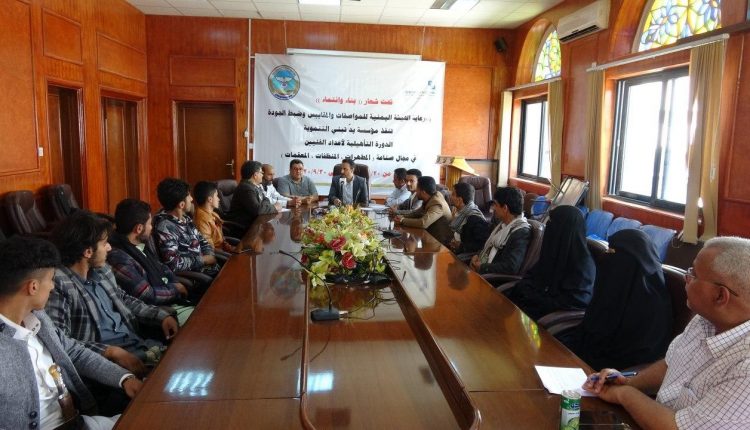 بدأت اليوم بصنعاء دورة تدريبية في مجال صناعة المنظفات والمعقمات والمطهرات تنظمها مؤسسة يد تبني التنموية بالتعاون مع الهيئة اليمنية للمواصفات والمقاييس وضبط الجودة.