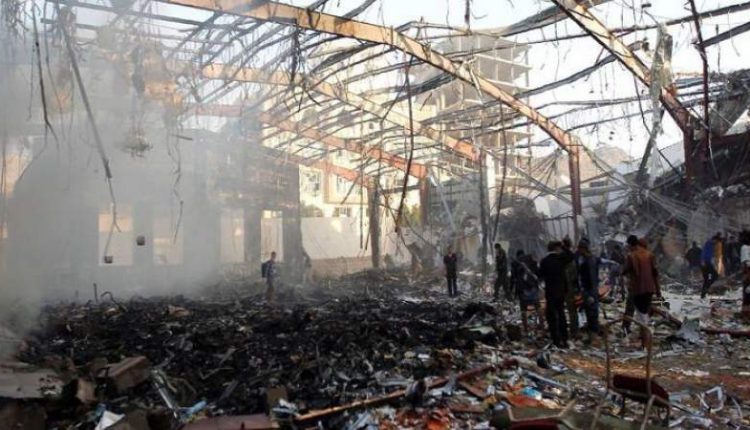 واستهدف العدوان الأمريكي السعودي، الصالة المكتظة بمئات المعزين الذي قدموا من مختلف المحافظات اليمنية لتعزية والد الفريق الركن جلال الرويشان – نائب رئيس الوزراء لشؤون الدفاع والأمن في وفاة والده.