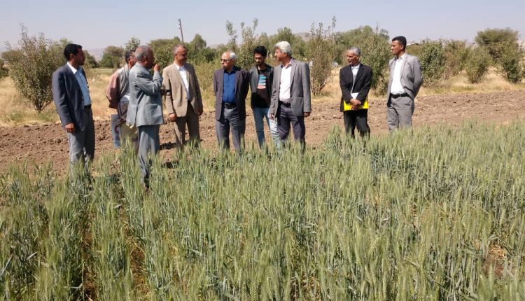 دشن وكيل وزارة الزراعة والري لقطاع تنمية الإنتاج الزراعي المهندس علي الفضيل اليوم بمحطة البحوث الزراعية للمرتفعات الشمالية بصنعاء حقول إيضاحية لمحاصيل الحبوب والبقوليات .