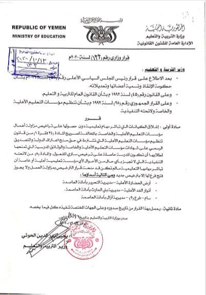 وزارة التربية تعلن عن إغلاق ثلاث مدارس أهلية في العاصمة صنعاء وهذا ما سيحدث يوم السبت المقبل (وثيقة)