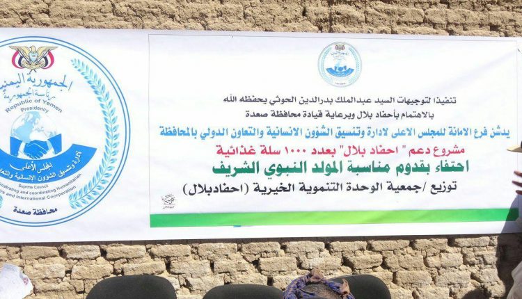 تدشين توزيع سلال غذائية لأحفاد بلال بصعدة بمناسبة المولد النبوي الشريف
