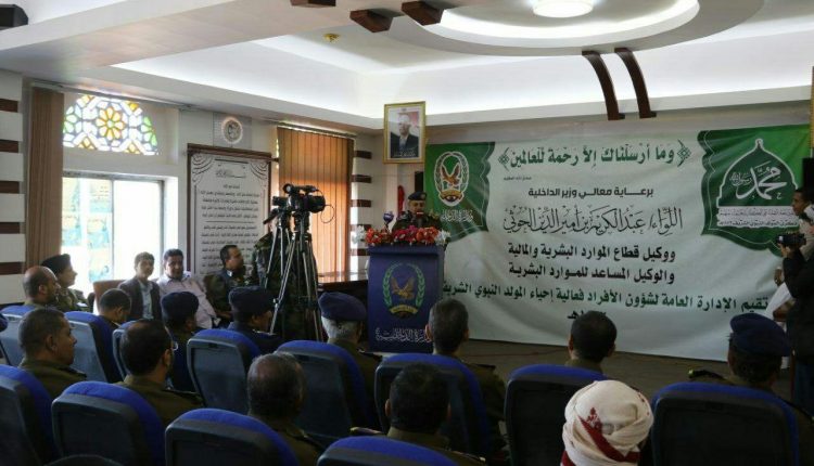 أما في فعالية الإدارة العامة لشؤون الأفراد تحدث وكيل وزارة الأوقاف والإرشاد الإستاذ صالح الخولاني عن أهمية الاحتفال بهذه المناسبة العظمية التحشيد لها، ونوه الى ان الثقافة المغلوطة التي تقول بأن هذه الاحتفال بالمولد تعتبر بدعه ماهي إلا نتيجة للثقافة المغلوطة.