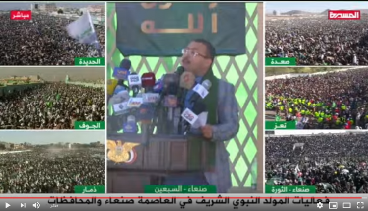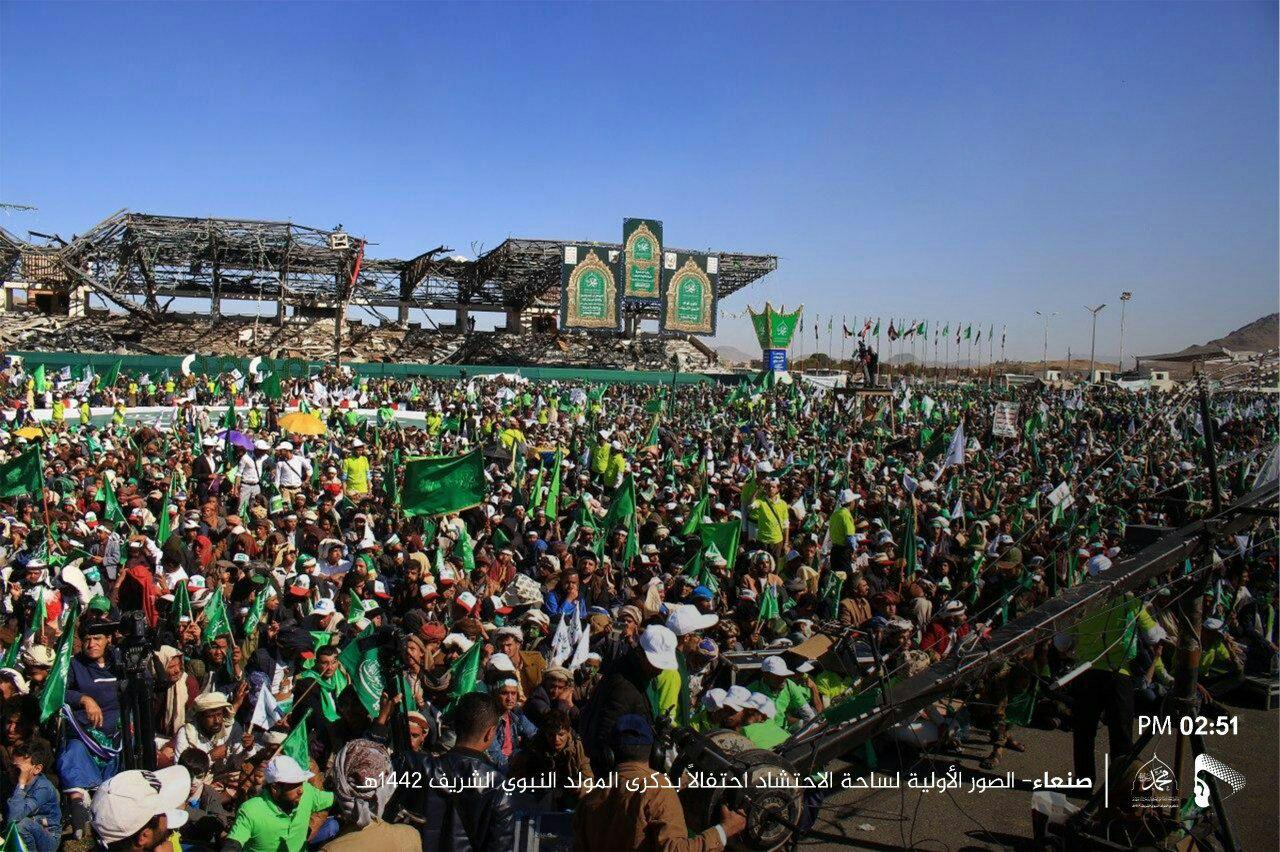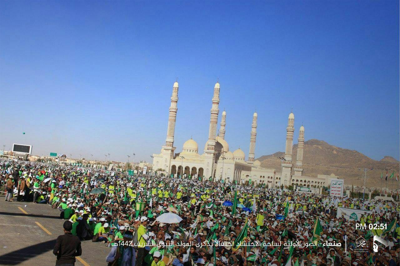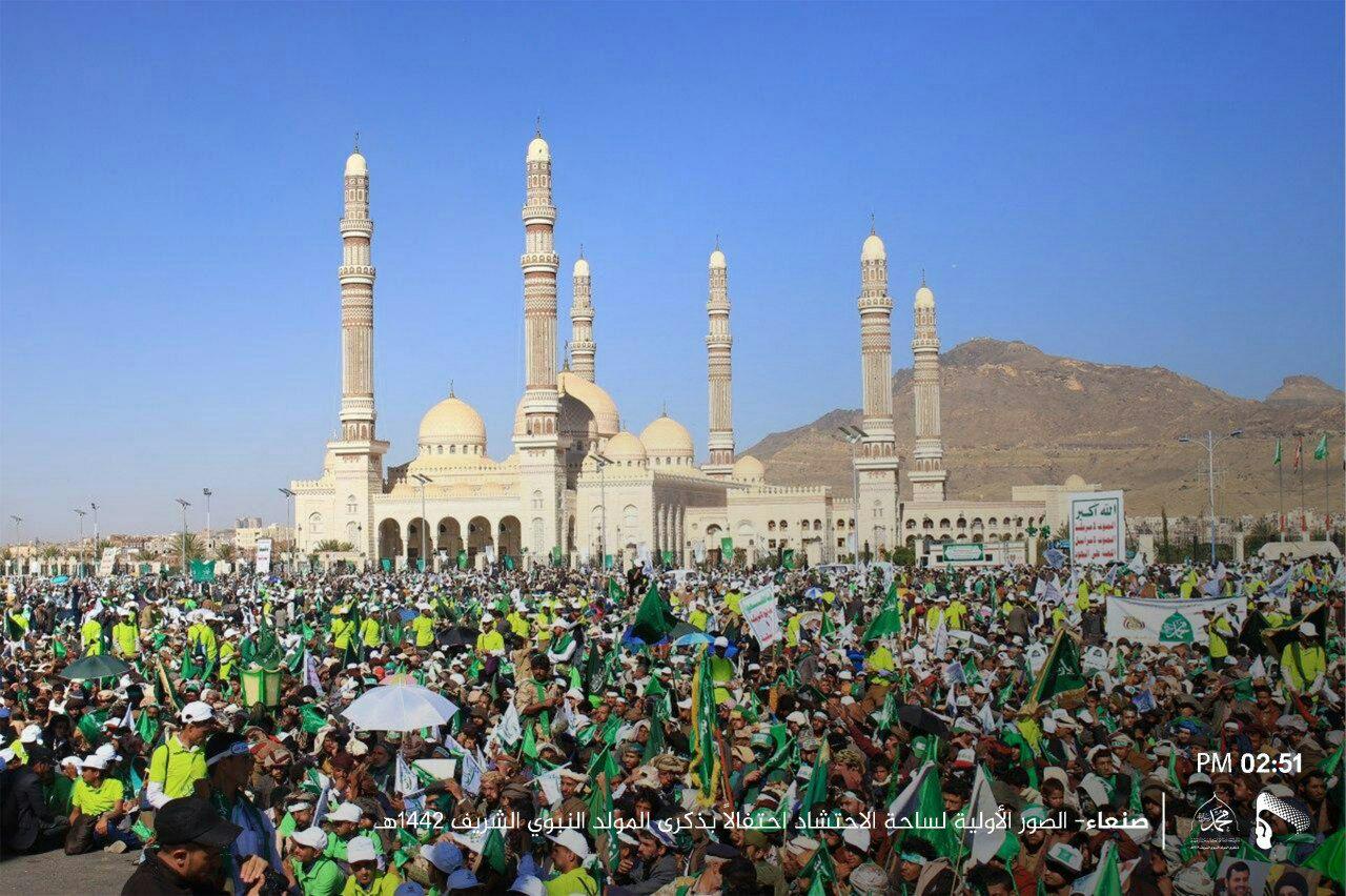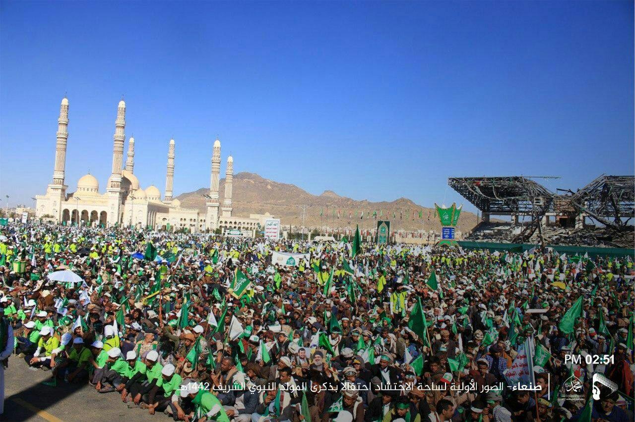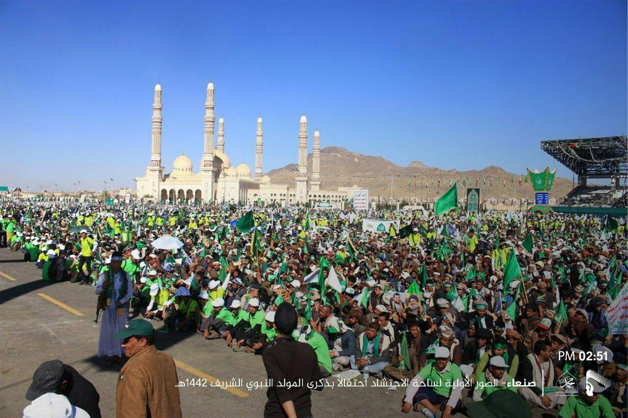 ففي العاصمة اليمنية صنعاء اكتظ ميدان السبعين بحشود جماهيرية غير مسبوقة تعد حتى اللحظة بمئات الآلاف قدمت من مختلف مديريات الأمانة ومحافظة صنعاء للاحتفاء بذكرى المولد النبوي الشريف على صاحبه وآله أفضل الصلاة وأتم التسليم.