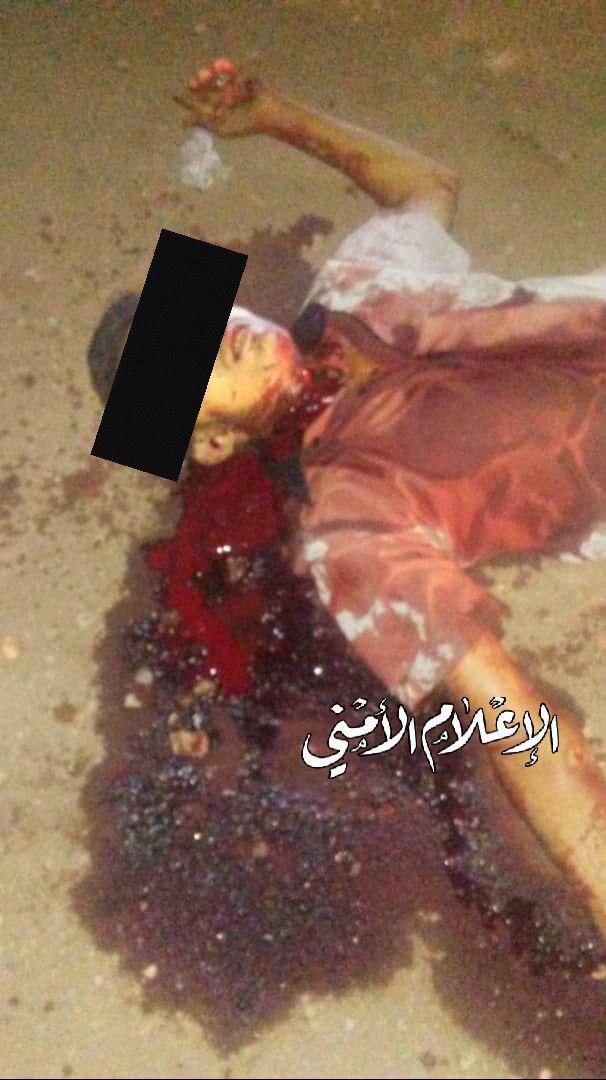 وأوضح أمن المحافظة أن أحد المواطنين ويدعى على نبيل المطري ” _ 20 عاما _ سائق باص ، وجد مذبوحا في منطقة مركز مسجد الدعوة، مابين قرية الغرقة ، وقرية عزان في مديرية العرش .