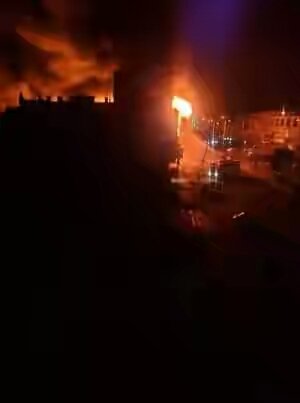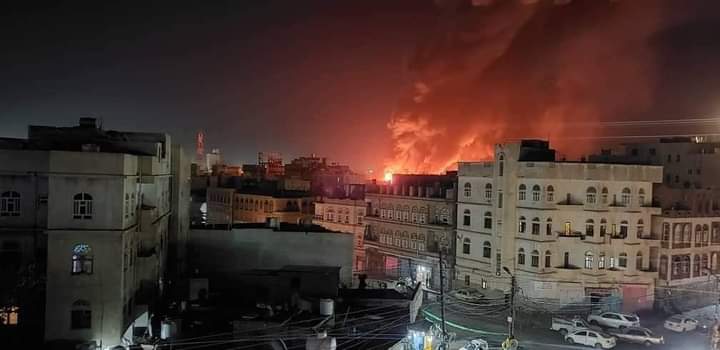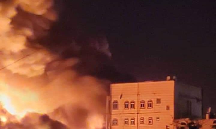 شاهد بالفيديو والصور الحريق الهائل الذي اندلع في العاصمة صنعاء وطال عدد من المحلات والمنازل المجاورة وما زال مشتعلاً حتى اللحظة (تفاصيل ومعلومات أولية)