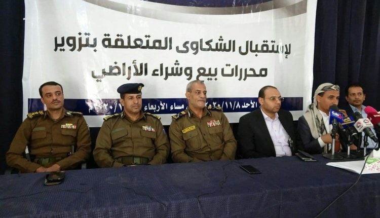 عقد اليوم بالعاصمة صنعاء لقاء موسعا لمناقشة آلية عمل لجنة استقبال الشكاوى المتعلقة بتزوير المحررات العقارية.