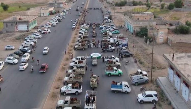 وتحتوي القافلة على مبالغ مالية ومئات من رؤوس الأغنام والماشية وكميات من العسل والمواد الغذائية والعصائر والمياه.