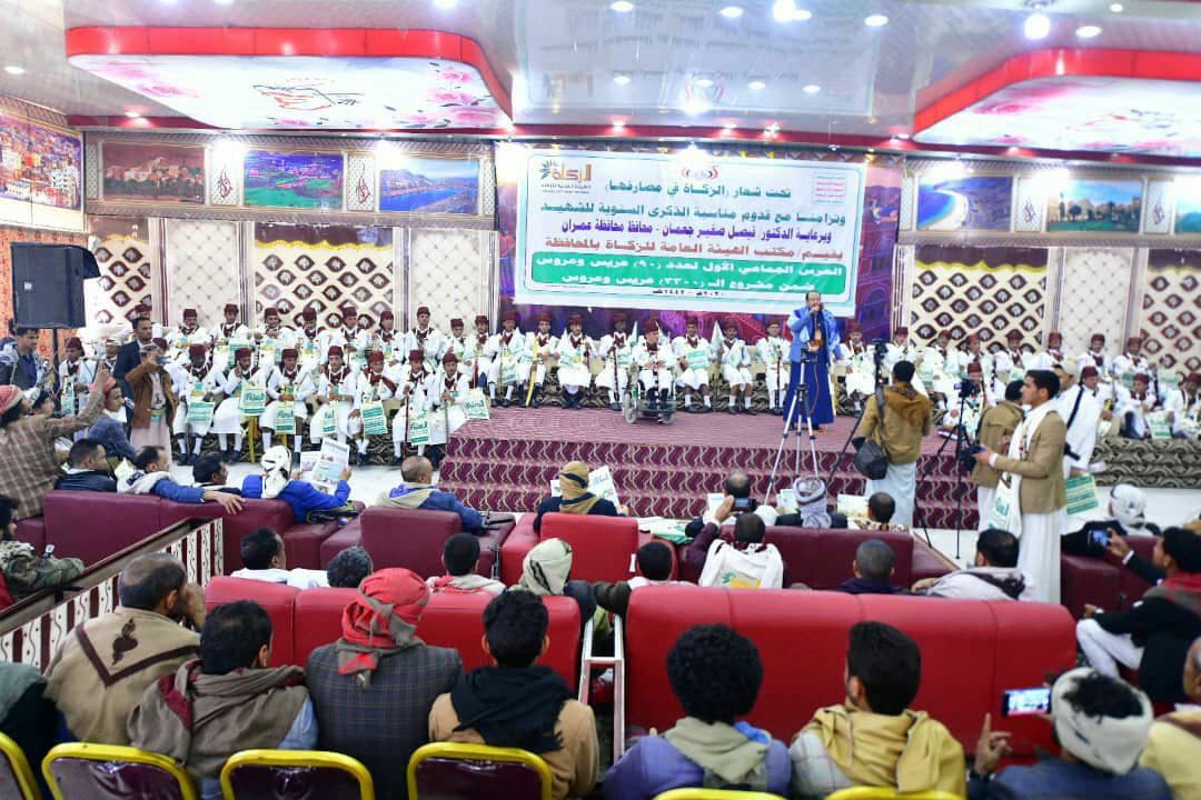 وفي العرس الجماعي الذي أقيم تحت شعار “الزكاة في مصارفها”، هنأ محافظ عمران الدكتور فيصل جعمان، العرسان بزفافهم وإكمال نصف دينهم، مؤكداً أهمية تنفيذ هذه المشاريع التي تعزز التكافل الاجتماعي وتحصن الشباب خاصة في ظل الأوضاع الصعبة التي يمر بها الوطن جراء العدوان والحصار .