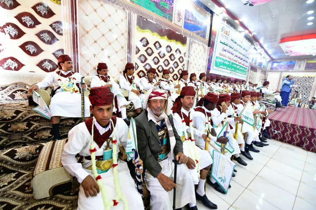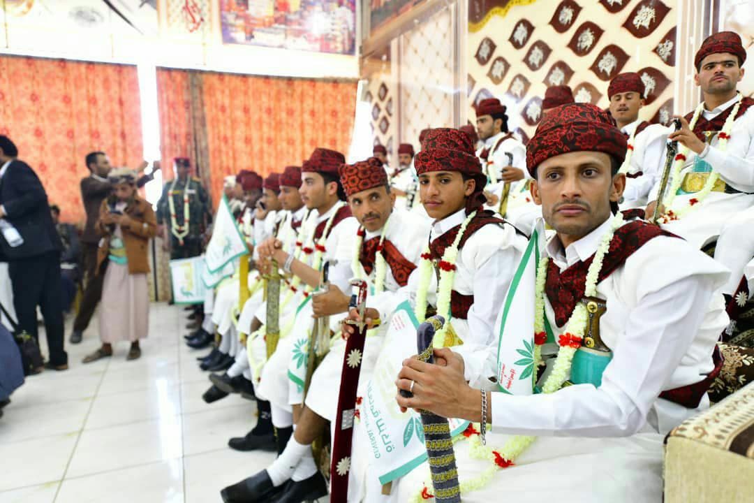 احتفل 90 عريساً وعروساً من الفقراء والمحتاجين وأبناء الشهداء والجرحى وأحفاد بلال بمحافظة عمران، اليوم بإكمال نصف دينهم في عرس جماعي نظمته الهيئة العامة للزكاة بالمحافظة .