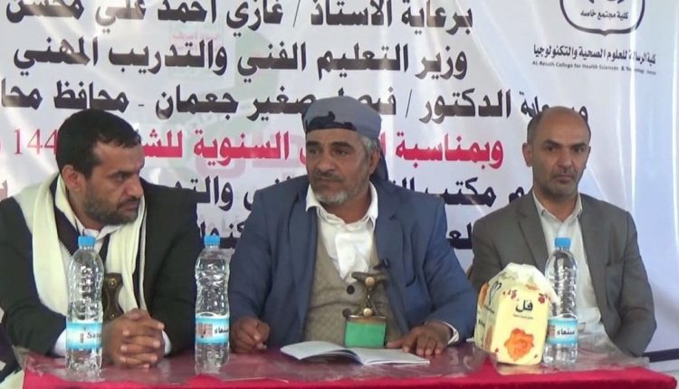 نظّم مكتب التعليم الفني والتدريب المهني وكلية الرسالة للعوم الصحية والتكنولوجيا بمحافظة عمران اليوم ندوة ثقافية بمناسبة الذكرى السنوية للشهيد تحت عنوان ” ثقافة الشهادة وعظمة ومكانة الشهداء “.