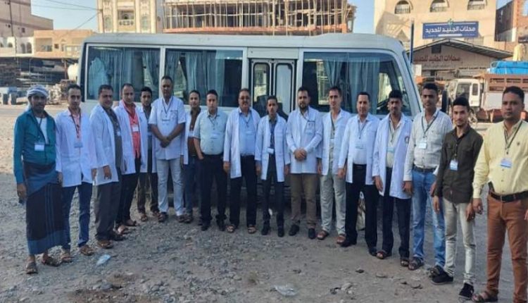 هيئة مستشفى الثورة بالحديدة تسير قافلة طبية لمديرية الجراحي
