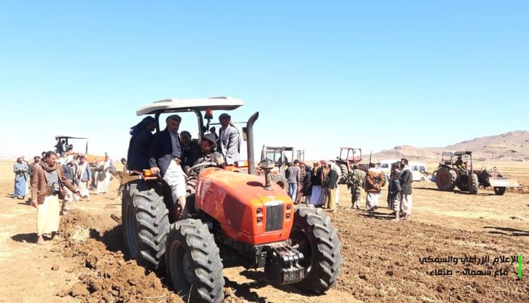 دشن نائب وزير الزراعة والري الدكتور رضوان الرباعي ومعه وكيل محافظة صنعاء لقطاع الاستثمار يحيى جمعان، يوم الإثنين، في مديرية بني مطر برنامج دعم وتشجيع المزارعين بالحراثة المجتمعية.