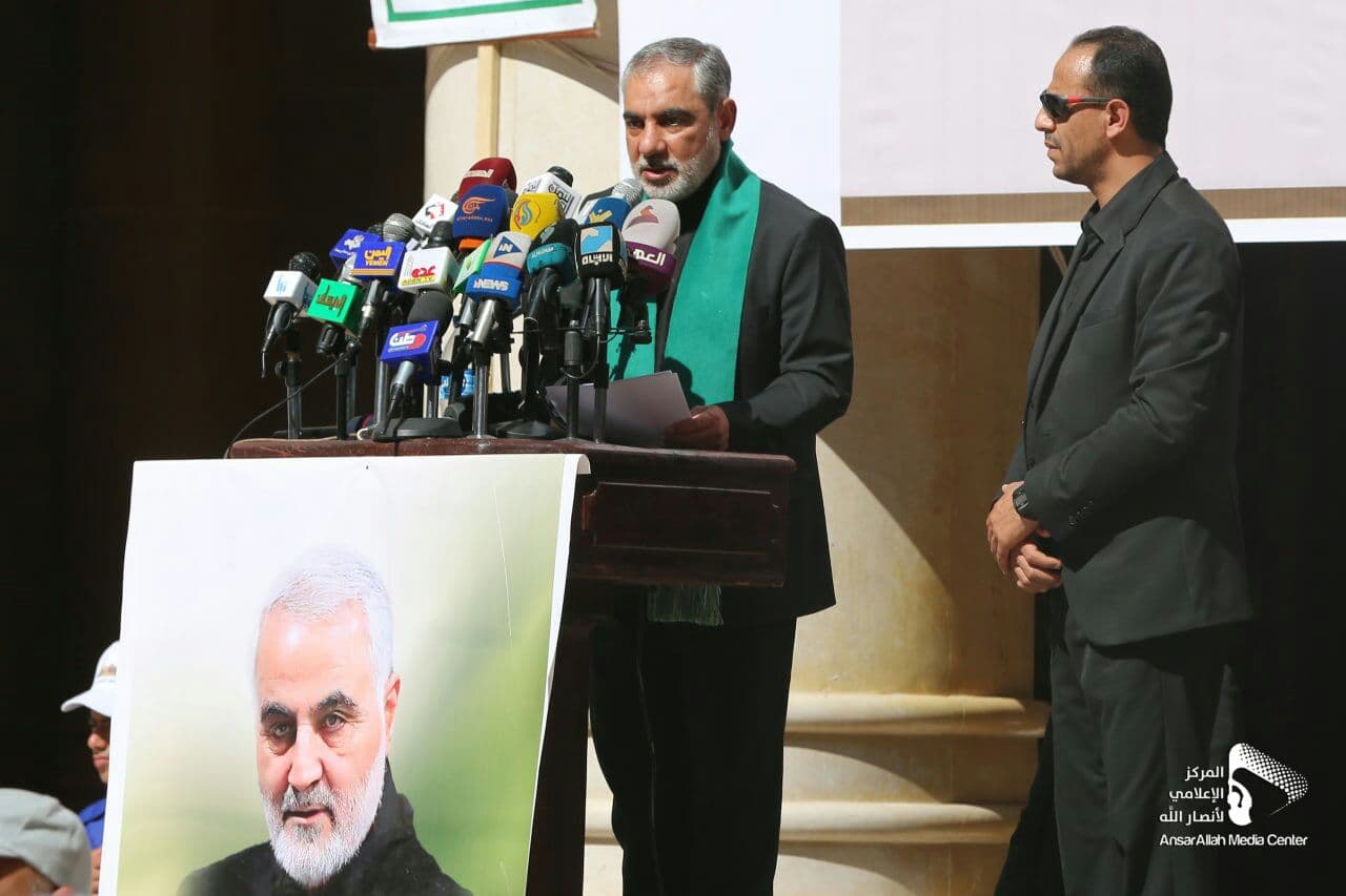 وفي الفعالية بحضور نائبي رئيس الوزراء لشئوني الخدمات والتنمية الدكتور حسين مقبولي والرؤية الوطنية محمود الجنيد وأمين العاصمة حمود عباد وعدد من الوزراء، ثمن السفير الإيراني لدى اليمن حسن إيرلو، اهتمام القيادة اليمنية بإحياء الذكرى الأولى لاغتيال اللواء قاسم سليماني وأبو مهدي المهندس، والتي تأتي بالتزامن مع الذكرى السنوية للشهيد.