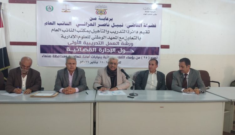 وكان 25 من رؤساء الأقلام الجنائية بأمانة العاصمة ومحافظة صنعاء تلقوا خلال الورشة التي استمرت يومين بالتعاون مع المعهد الوطني للعلوم الإدارية، معارف حول الإدارة القضائية واختصاصات الأقلام الجنائية وكيفية إدارة العاملين بالنيابة لأعمال التحقيق والإشراف على السجلات والتحليل الإحصائي وأعمال المحفوظات وكيفية التصرف في المضبوطات والإجراءات المتعلقة بحوادث السرقة والإهمال والاختلاس.